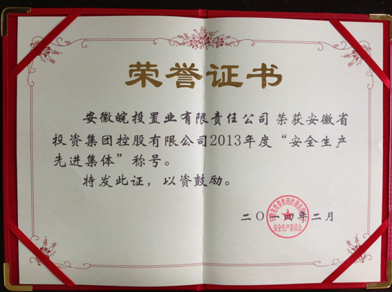 近日,公司在集團公司2013年度安全生產(chǎn)工作評比中,榮獲“安全生產(chǎn)先進集體”稱號。