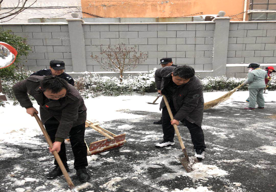 2018年1月25日,安徽省境內(nèi)出現(xiàn)大范圍強降雪,雪量大、來勢急。突如其來的暴雪,導(dǎo)致道路受阻,雪后結(jié)冰,存在諸多安全隱患。公司黨員、物業(yè)公司工作人員沖鋒在前,充分發(fā)揮先鋒模范作用,戰(zhàn)斗在除雪防災(zāi)的第一線。