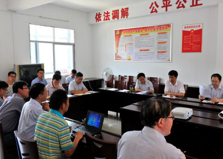 調(diào)研組一行,在水坪村村部聽取項目建設(shè)規(guī)劃、室內(nèi)精裝修設(shè)計方案、室外景觀設(shè)計方案及項目建設(shè)、投資等情況的匯報。