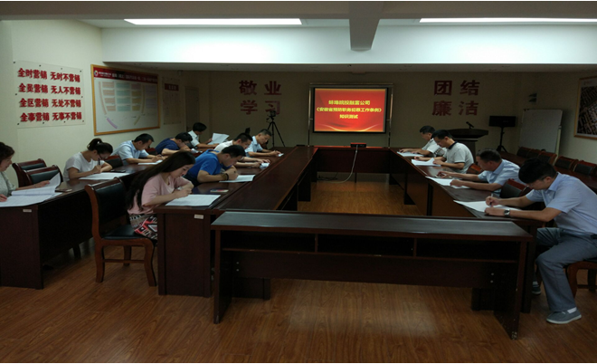 為進(jìn)一步增強(qiáng)員工預(yù)防職務(wù)犯罪的意識(shí)和能力,有效防范和遏制職務(wù)犯罪案件的發(fā)生,著力營(yíng)造公司“敬業(yè)、團(tuán)結(jié)、學(xué)習(xí)、廉潔”的企業(yè)文化,2016年9月14日下午,公司黨支部組織開展《安徽省預(yù)防職務(wù)犯罪工作條例》專題學(xué)習(xí)及知識(shí)測(cè)試活動(dòng)。公司主管級(jí)以上人員及全體黨員參加會(huì)議。
