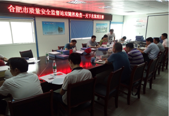 2017年6月15日上午,合肥市質(zhì)量安全監(jiān)督站相關(guān)領(lǐng)導(dǎo)蒞臨合肥天下名筑項(xiàng)目進(jìn)行雙隨機(jī)檢查并召開(kāi)專(zhuān)題會(huì)議,天下名筑現(xiàn)場(chǎng)主要負(fù)責(zé)人,監(jiān)理單位、中建五局相關(guān)負(fù)責(zé)人參加。