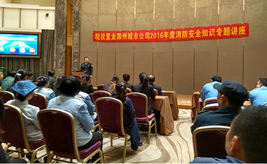 為切實(shí)做好酒店消防安全工作,全面強(qiáng)化員工防火意識(shí),普及消防安全知識(shí),2016年11月8日上午,皖投.齊云山莊酒店舉辦消防安全知識(shí)專題培訓(xùn)講座,特邀滁州市政安消防技術(shù)服務(wù)有限責(zé)任公司蔣飛教官授課,酒店及皖投置業(yè)滁州城市公司近八十人參加培訓(xùn)。