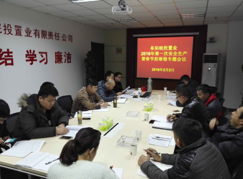 2016年2月2日,阜陽(yáng)城市公司組織召開(kāi)濱河花園項(xiàng)目2016年度第一次安全生產(chǎn)暨春節(jié)前維穩(wěn)安全專題會(huì)議。阜陽(yáng)城市公司工程技術(shù)中心,濱河花園項(xiàng)目一期監(jiān)理、總包單位相關(guān)負(fù)責(zé)人參加會(huì)議。