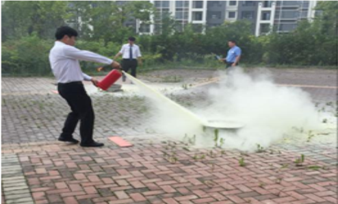 按照酒店滅火演練方案,演練活動在酒店北停車場舉行,保安事先疏導(dǎo)車輛停放到安全區(qū)域遠離演練現(xiàn)場。下午14時,酒店員工準時到滅火演練指定地點集合,綜保部人員做好布置演練火場準備,救援組負責(zé)隨時救護傷員。演練開始前,首先由安保部主管講解消除火災(zāi)隱患排查,宣講消防安全“四個能力”知識,消防安全注意事項,示范滅火器的使用方法。隨后,員工按部門依次兩兩一組,進行滅火器滅火操作,演練過程緊張有序。