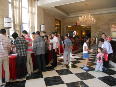 此次活動中到訪的所有客戶均將獲得一張祝??ㄆ蛻艨梢栽谧8?ㄆ蠈懮献约簩蠋熣\摯的祝福貼在祝福墻上,活動中將從中抽取10名客戶贈送禮品一份?;顒蝇F(xiàn)場還準備了豐富多彩的其它活動:猜燈謎、月餅DIY、桌面足球等互動游戲,參與現(xiàn)場活動即可有機會獲得豐厚的獎品。持有活動邀請函的老師在活動結束時,憑邀請函還能兌換一份精美禮品。
