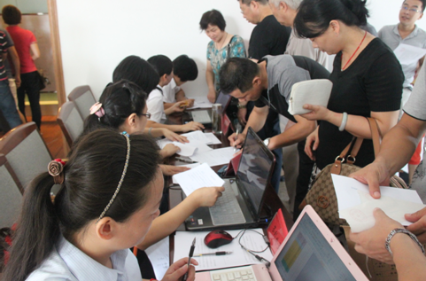 2012年9月1日,湖東景園商鋪搖號工作順利開展。早上七點多鐘,客戶們就陸續(xù)來到現(xiàn)場,排起了長隊,工作人員立即投入到緊張有序的工作中去。此次商鋪銷售與以往不同,在商鋪數(shù)量少、定購客戶多的情況下,為了防止在搖號過程中有突發(fā)事件發(fā)生,工作人員緊密配合、環(huán)環(huán)相扣,從簽到、搖號、選房、交款、簽訂協(xié)議、房源確認(rèn)等各項環(huán)節(jié)中,嫻熟機智的應(yīng)變著每一個環(huán)節(jié)的分工角色。