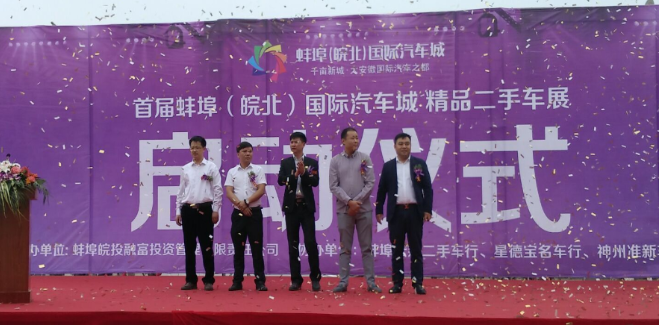 首屆蚌埠(皖北)國際汽車城精品二手車展于2016年5月14日在蚌埠國際汽車城會展中心舉行啟動儀式,此次車展為期兩天,由蚌埠皖投融富投資管理有限責(zé)任公司主辦,宏翔二手車行、星德寶名車行、神州準(zhǔn)新車、百誠名車館四家蚌埠地區(qū)知名二手車行協(xié)辦。