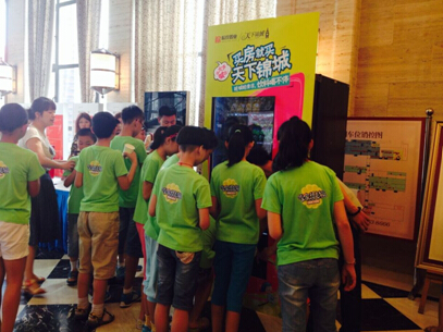 6月8日下午,眾多大朋友和小朋友如約來到活動現(xiàn)場,穿上由天下錦城贈送的T恤,一個個看起來充滿活力。本次共到訪40組家庭,下午2:00左右,活動在主持人的宣布下正式開始,小朋友們排起了長隊參與到比賽當(dāng)中,袋鼠跳、大腳板一家人考驗著小朋友們的運動素質(zhì)和默契配合,瘋狂拼圖鍛煉了小朋友們的智力和耐心,還有快樂大腳射門,讓小朋友們提前感受到了世界杯的激情四射。本場活動還與騰訊房產(chǎn)合作,在現(xiàn)場布置了微信自動販賣機(jī),到場嘉賓只要用微信添加天下錦城的公眾微信號(微信號:wxjc),并在微信販賣機(jī)面前喊出“買房就買天下錦城”,便可獲得各種爽口的飲料。