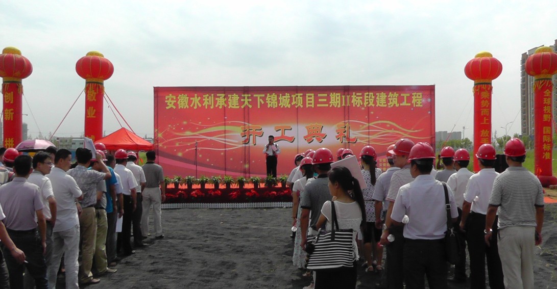 2013年7月28日上午,天下錦城三期Ⅱ標(biāo)段開工典禮隆重舉行。安徽皖投置業(yè)有限公司、安徽水利開發(fā)股份有限公司、安徽省中灝工程咨詢有限公司等單位相關(guān)人員出席開工儀式。