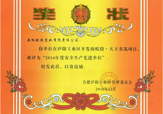 2016年12月,合肥天下名筑項(xiàng)目在合肥市廬陽區(qū)管委會開展的安全生產(chǎn)先進(jìn)單位的評比中榮獲“2016年度安全生產(chǎn)先進(jìn)單位”,廬陽區(qū)管委會對合肥城市公司在認(rèn)真貫徹落實(shí)各級關(guān)于安全生產(chǎn)工作的一系列安排和部署上予以充分肯定。