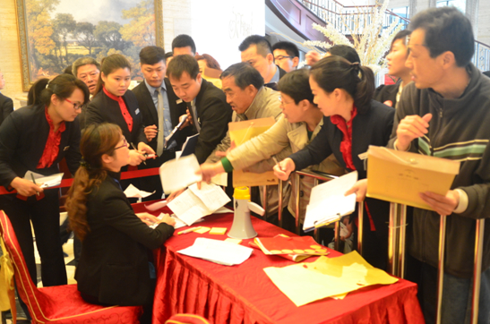 清晨細雨綿綿,但抵擋不住眾多購房者的熱情。早上8點鐘左右,營銷中心等候區(qū)已擠滿了人,他們都在等待著正式選房時間的到來。本次開盤采用電子搖號的形式,9點18分正式產(chǎn)生第一輪的8組號碼,8組客戶按照搖號的順序依次進入銷售現(xiàn)場,在置業(yè)顧問熱情講解中,選房、下定,整個流程秩序井然,絕大部分客戶都選到了自己滿意的房源。