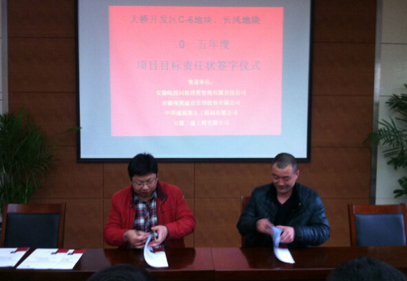 2015年3月10日下午,安慶城市公司與監(jiān)理、總包單位2015年度年度目標(biāo)責(zé)任狀簽字儀式在安慶城市公司二樓會議室舉行,公司工程技術(shù)部,安徽南巽監(jiān)理、中建五局、安徽三建等相關(guān)人員出席并參加簽字儀式,簽字儀式就2015年年度目標(biāo)責(zé)任達(dá)成一致。