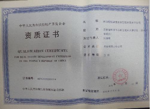 近日,經(jīng)市住建委、資料科、質(zhì)量監(jiān)督局等多部門相關(guān)負(fù)責(zé)人的相互協(xié)調(diào)、嚴(yán)格審查,蚌埠皖投融富公司順利獲得住房和城鄉(xiāng)建設(shè)部頒發(fā)的“房地產(chǎn)開發(fā)三級資質(zhì)證書”。