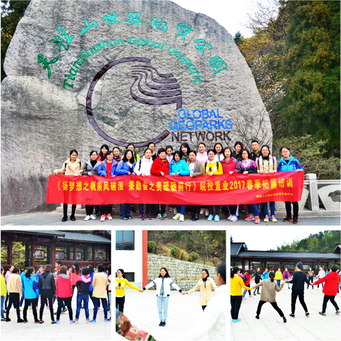 2017年3月10日-11日,皖投置業(yè)攜手新安人才網(wǎng)企管中心,在安徽天柱山拓展基地為皖投置業(yè)的員工們組織了“揚夢想之帆乘風(fēng)破浪,秉勤奮之責(zé)砥礪前行?!钡闹黝}拓展訓(xùn)練。此次拓展訓(xùn)練旨在慶祝3月8日國際勞動婦女節(jié),組織各位女性員工體驗大自然風(fēng)光的同時培養(yǎng)員工奮發(fā)向上,互幫互助,積極主動的集體主義精神。鍛煉學(xué)員的耐力和執(zhí)行力,提高職業(yè)精神,展現(xiàn)新時代的女性力量和女性魅力。