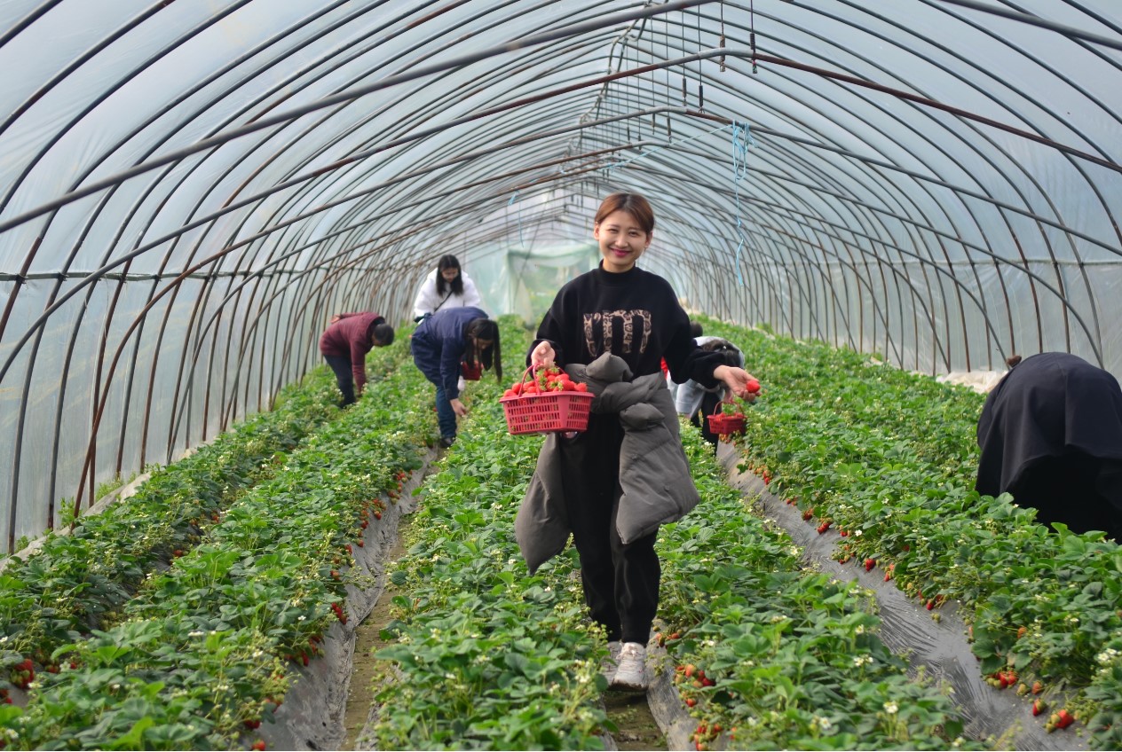 活動當天8:40,女職工們集體乘車,一路歡聲笑語的來到了大圩草莓基地。大棚中一個個紅彤彤的草莓“躺”在綠油油的嫩葉間,如同一盞盞小紅燈籠,十分誘人。新鮮的草莓個頭飽滿,透著鮮紅的色澤。女職工們拎著采摘籃一顆一顆將草莓摘下,滿滿一筐的新鮮草莓印著她們的臉更加紅艷。有的更是摘下后立刻送入口中,享受著新鮮甜美的草莓滋味。