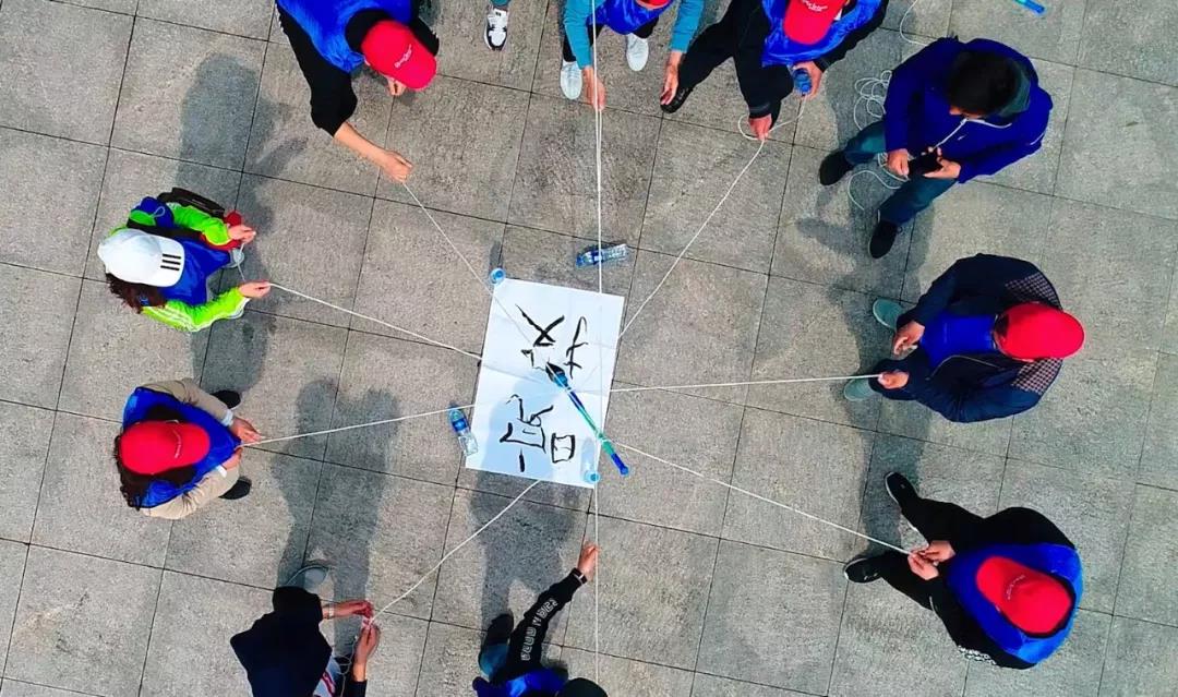 “皖投”兩個(gè)字,哪怕是一個(gè)人稍有不慎,字幅都無(wú)法完成,在一眾人的通力合作下,完美呈現(xiàn)。