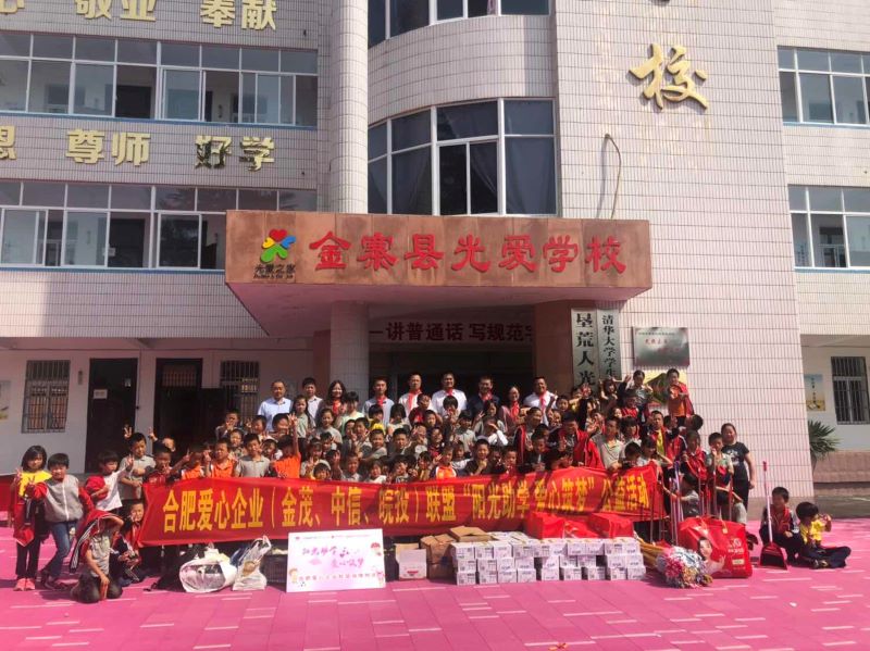 喜迎七十華誕,感恩偉大祖國(guó),為積極踐行國(guó)企社會(huì)責(zé)任,公司聯(lián)合中國(guó)金茂合肥公司、中信銀行合肥望江西路支行共同成立“陽(yáng)光助學(xué) 愛(ài)心筑夢(mèng)”——合肥愛(ài)心企業(yè)聯(lián)盟,于9月25日、26日開(kāi)展愛(ài)心助學(xué)活動(dòng),先后走進(jìn)金寨縣燕子河初級(jí)中學(xué)、水竹坪實(shí)驗(yàn)學(xué)校水坪教學(xué)點(diǎn)、金寨縣光愛(ài)學(xué)校。活動(dòng)前,公司積極與學(xué)校溝通,按需捐助,同時(shí)發(fā)動(dòng)公司員工積極捐物,奉獻(xiàn)點(diǎn)點(diǎn)愛(ài)心。