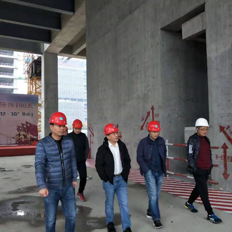 郭景明一行首先深入現(xiàn)場,詳細了解了總部辦公樓、酒店及超高層等單體進度情況,對項目現(xiàn)場施工進度及項目管理工作給予高度認可。隨后郭景明指出,臨近年終,項目在施工過程中,要高度重視安全生產(chǎn)工作,嚴抓不懈。