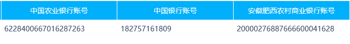 開戶銀行:中國農(nóng)業(yè)銀行肥西縣支行