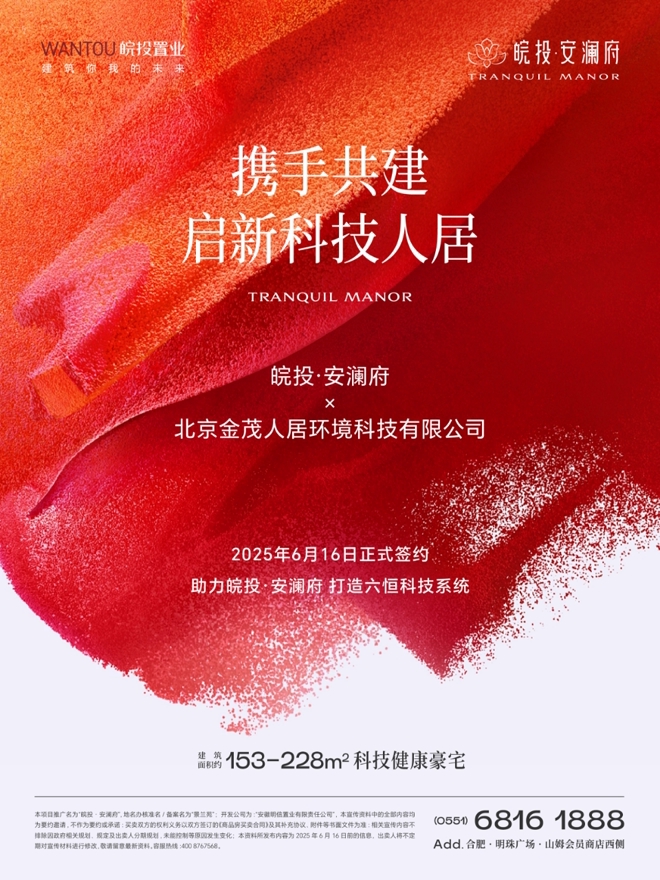2025年6月16日,皖投置業(yè)公司旗下項(xiàng)目——皖投·安瀾府,與北京金茂人居環(huán)境科技有限公司就“科技系統(tǒng)”的引入與應(yīng)用正式簽約。此次合作旨在為業(yè)主提供更加舒適、健康、節(jié)能的居住體驗(yàn)。
